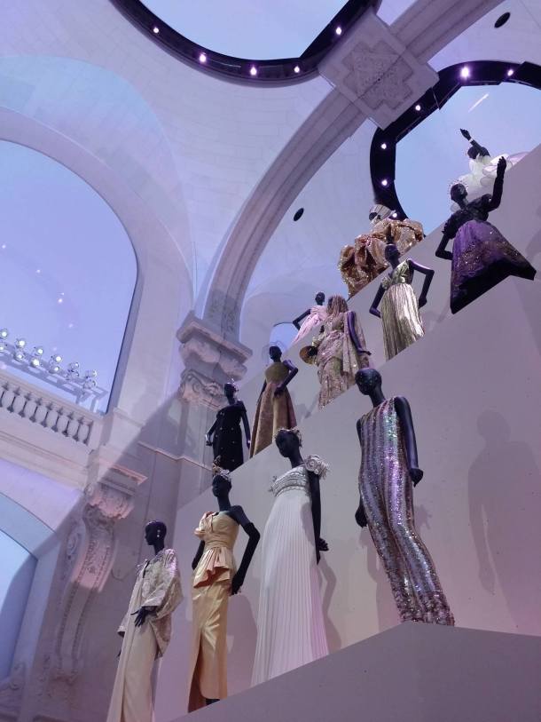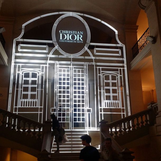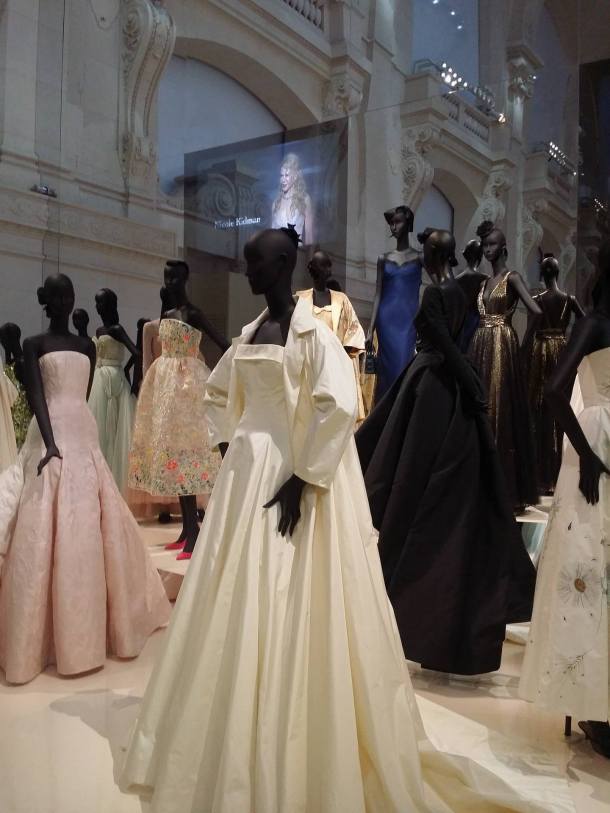 ” Pour célébrer les soixante dix ans de la Maison, cette rétrospective montre comment Christian Dior et les six directeurs artistiques qui lui ont succédé ont conçu et construit le rayonnement d’un nom aujourd’hui synonyme de haute couture en France et dans le monde entier. Avec leur propre sensibilité, Yves Saint Laurent, Marc Bohan, Gianfranco Ferré, John Galliano, Raf Simons et aujourd’hui Maria Grazia Chiuri ont ainsi élaboré une grammaire stylistique fidèle à l’élan initial et contribué à définir l’identité de Christian Dior dans sa relation avec l’époque. Accompagnant cette évocation de la haute couture, résonnent aussi les créations de Frédéric Castet pour la haute fourrure, celles de Serge Lutens, de Tyen et de Peter Philips pour la beauté, ainsi que de François Demachy pour les parfums.” (cf Les Arts Décoratifs)