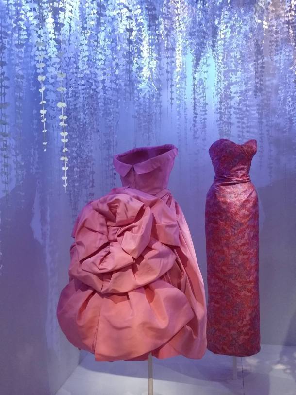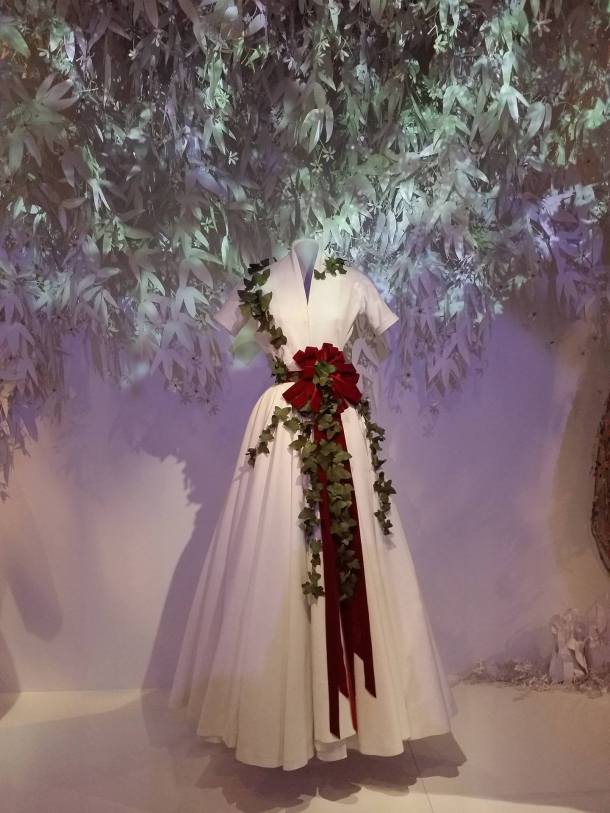Allez c’est partit je vous emmène ! En premier, un vaste rappel de la vie du couturier, l’enfance qu’il mène à Granville, les années un peu folles de découverte artistique et des spectacles parisiens, l’apprentissage du dessin de mode et finalement son entrée dans la haute couture. Avant de se diriger vers la mode, Christian Dior a été directeur de galerie, d’ou l’exposition de magnifique chefs-d’oeuvre à travers ses vêtements. C’est avec plaisir que je redécouvre la génération des artistes déjà célèbres dans la génération de Dior comme : Giacometti, Dalí, Calder, Leonor Fini, Max Jacob, Jean Cocteau ou Christian Bérard. On a droit a un cadre somptueux dans la nef, à l’image d’une salle de bal avec une présentation des robes du soir les plus magnifiques, on en prend les mirettes.