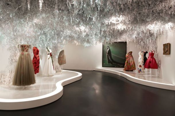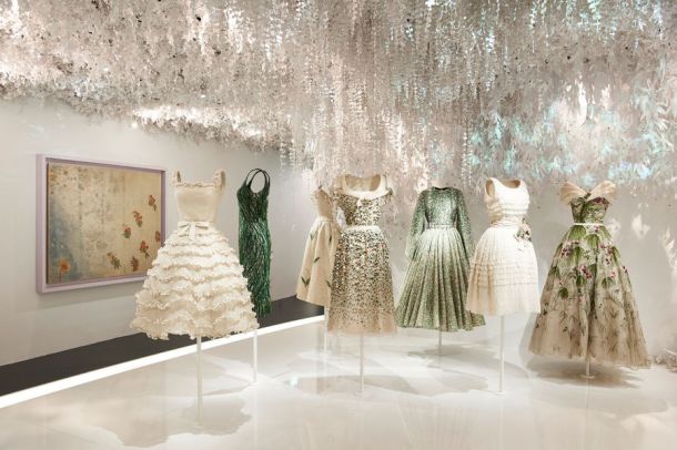 Pour cet ambitieux projet, la plupart des œuvres présentées sont issues du fonds Dior Héritage, le plus souvent jamais vues à Paris, auxquelles s’ajoutent les prêts exceptionnels provenant des collections du musée des Arts décoratifs et de l’Union française des Arts du costume, du Palais Galliera, du Costume Institute au Metropolitan Museum of Art de New York, du Victoria and Albert Museum de Londres, du De Young Museum de San Francisco, de la Fondation Pierre Bergé-Yves Saint Laurent, du Museum of London, du musée Christian Dior de Granville, ainsi que des œuvres d’art prestigieuses, de tout temps et de toute époque, provenant des collections du musée du Louvre, du musée d’Orsay et du musée de l’Orangerie, du Château de Versailles, du Centre Pompidou, du musée des Arts décoratifs et de nombreuses collections particulières.